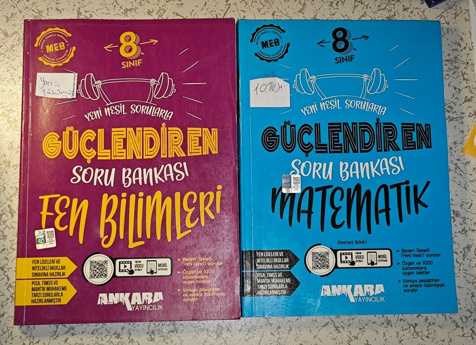 8. Sınıf LGS Güçlendiren Matematik ve Fen Bilimleri Soru Bankası. Millî Eğitim Bakanlığı Maarif Modeli’ne uygun, güncel müfredata göre hazırlanmıştır. Matematik kitabında yalnızca 10 test çözülmüştür. Fen Bilimleri kitabının yaklaşık yarısı çözülmüştür. Çözümler kurşun kalemle yapıldığı için silinip tekrar kullanılabilir durumdadır. Kitapların güncel internet satış fiyatları oldukça yüksek olup, uygun fiyata kaliteli kaynak arayanlar için kaçırılmayacak bir fırsattır. Sayfamda yalnızca 8. sınıf LGS’ye yönelik, oldukça çeşitli ve kaliteli hazırlık kitapları bulunmaktadır. Uygun fiyatlı, temiz ve sıfır kaynaklar için diğer ilanlarıma da göz atabilirsiniz.