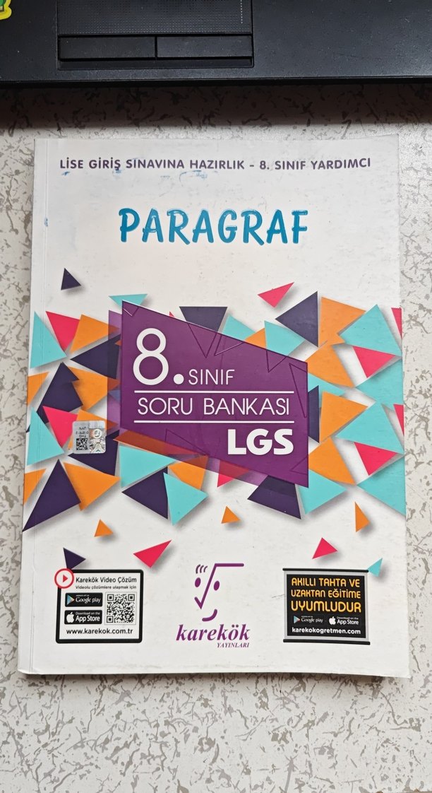 Karekök Yayınları 8. Sınıf LGS Paragraf Soru Bankası – 245 Sayfa Toplam 245 sayfanın yalnızca ilk 6 testi çözülmüştür. Genel olarak temiz, güncel müfredata uygun ve kaliteli bir paragraf kaynağıdır.