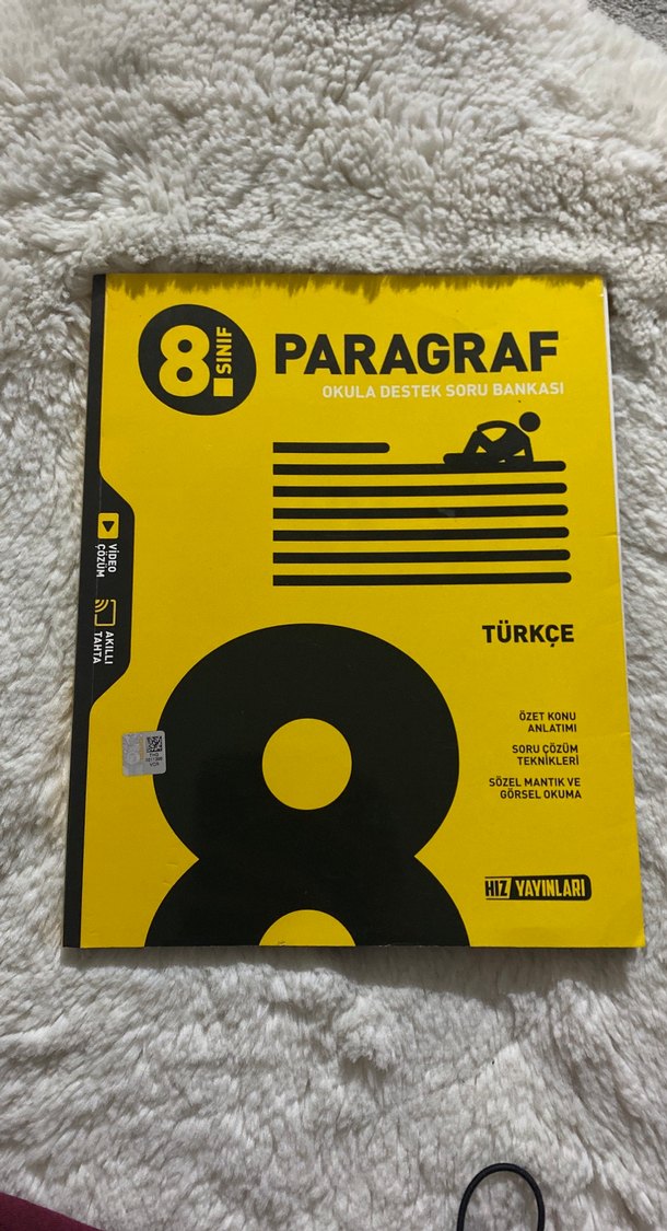 8. sınıf Türkçe paragraf kitabı, özet konu anlatımı, soru çözüm teknikleri ve sözel mantık ile görsel okuma alıştırmaları içerir. Ne kadar kullanıldıgını merak edıyorsanız dmden bana ulasın