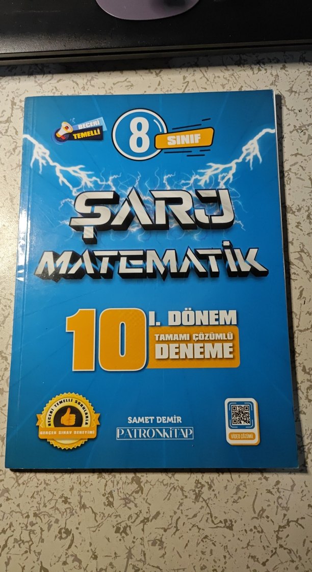 Samet Demir imzalı, Patron Kitap yayınlı 8. sınıf matematik için 10 tam çözüm deneme kitabı, 1. dönem konularını içerir.