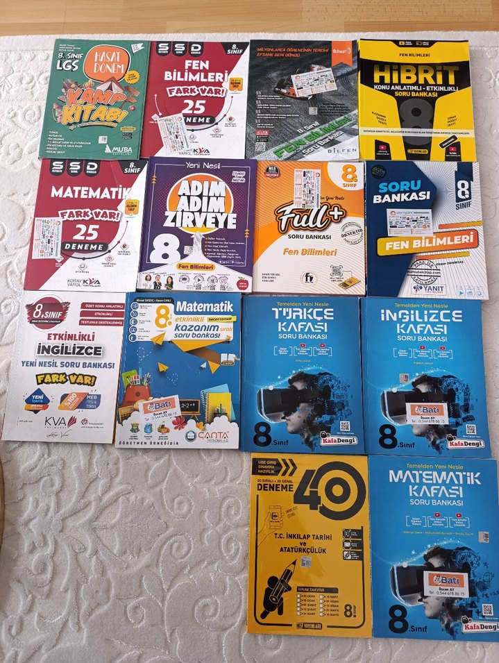 8. sınıf fen bilimleri, matematik, İngilizce ve Türkçe soru bankası ile deneme kitapları seti.