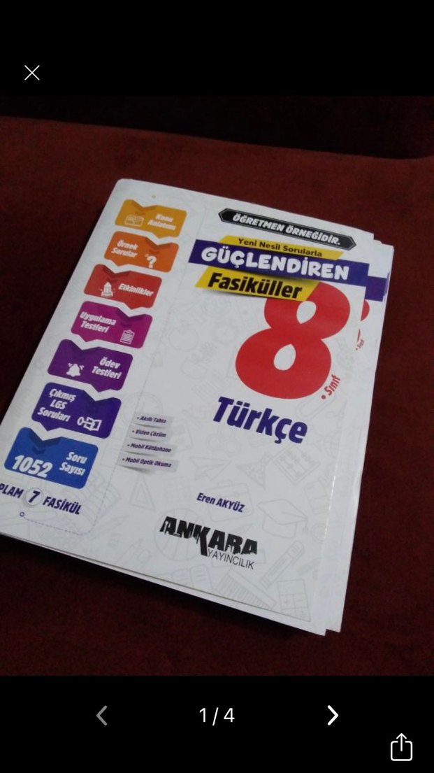 8. sınıf Türkçe için yeni nesil sorular ve çeşitli testler içeren güçlendiren fasiküller, gri ve çok renkli tasarımla. Fiilimsiler fasikülünde çözülmüş testler mevcuttur.Onun dışında ürün tertemiz ve yepyenidir.İçerisinde çıkmış LGS soruları,konu anlatımları,etkinlikler ve örnek sorular vardır.Fasiküllerde toplam 1052 soru mevcuttur.Örnek kitaptır.