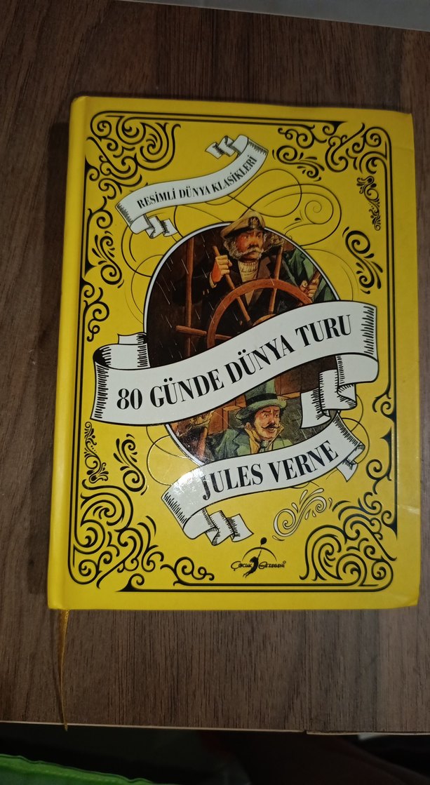 Jules Verne'nin 80 Günde Dünya Turu adlı kitabı, resimli dünya klasikleri serisinden sarı kapaklı bir eserdir.