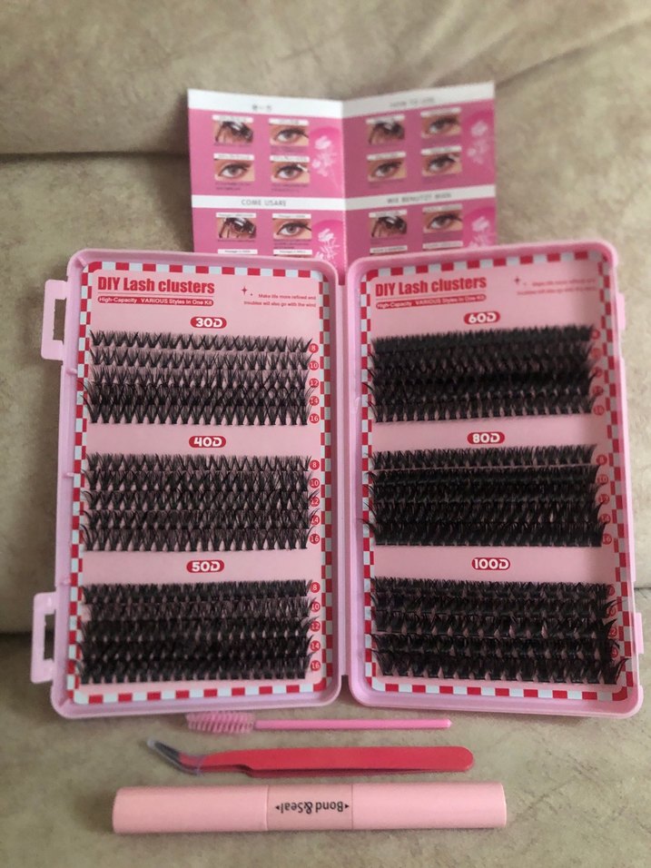 Çeşitli stillerde DIY kirpik kümeleri seti, uygulama araçları ve yapıştırıcı ile birlikte gelir. Görünümünüzü kolayca kişiselleştirin.