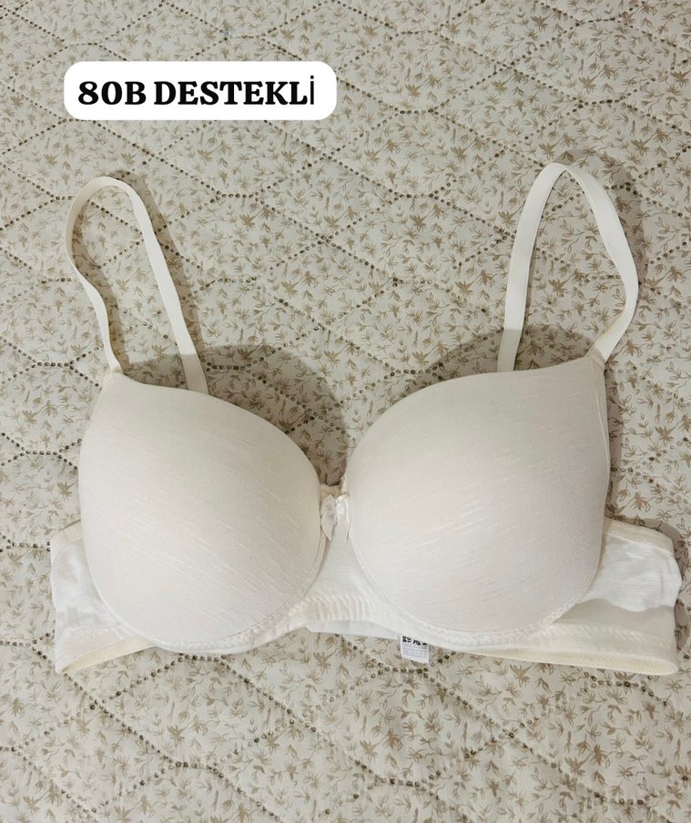 80B destekli, beyaz, desensiz ve bohem tarzda minimalist sütyen. Hafif renkte ve normal uzunluktadır.