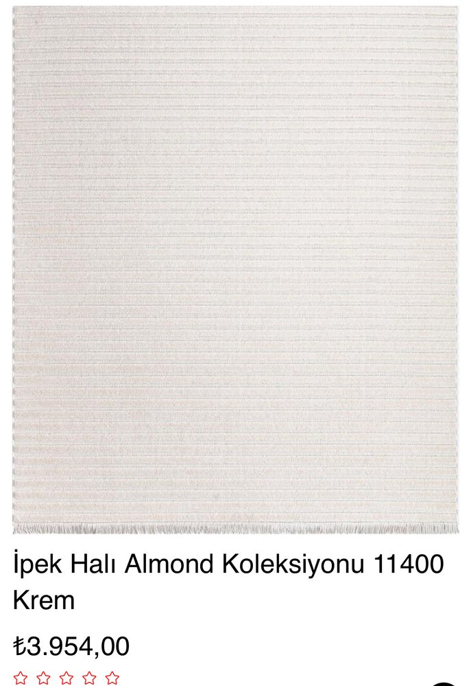 Çok az kullanıldı sıfırdan farksız küçük kaldığı için satıyorum çok güzel İpek Halı Almond Koleksiyonu'ndan krem renkli, desen içermeyen çağdaş tarzda yumuşak dokulu halı.