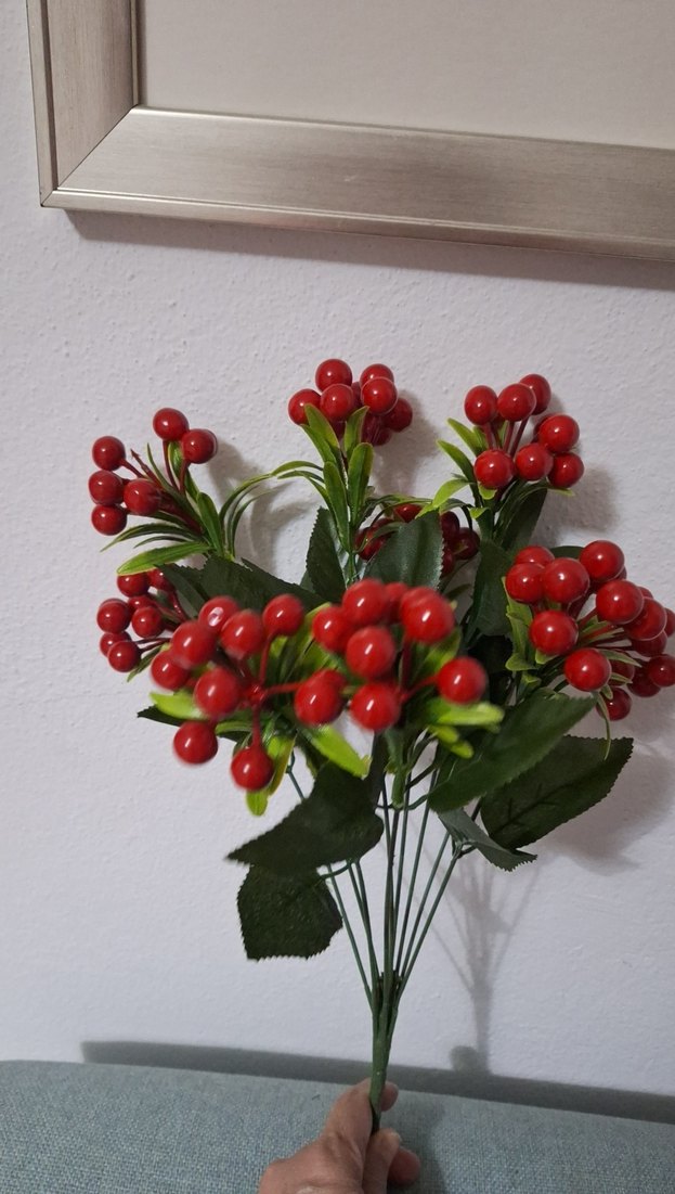 Renkli kırmızı yapay meyve dalları ve yeşil yaprakları ile ev dekorasyonuna doğal bir dokunuş katar. fotoğraflanmıştır 8 dal Her Bir Dalda 9 kokina vardır toplamda 72 adettir. #kokina #kokine #kırmızımeyve #noel
