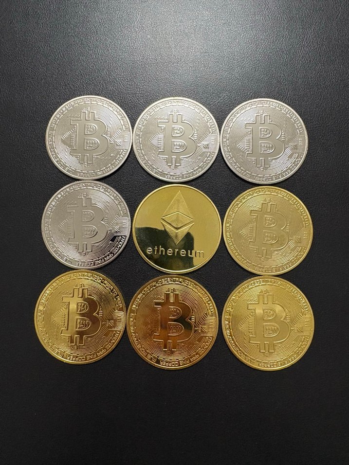 Altın renkte, minimalist biker tarzında erkek rozeti. Ethereum logosu ve koyu renkli sade tasarımıyla dikkat çeker.
