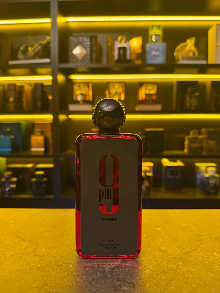 Yuvarlak kapaklı, koyu renk şişede Nine PM Rebel parfümü, güçlü ve etkileyici bir koku sunar.