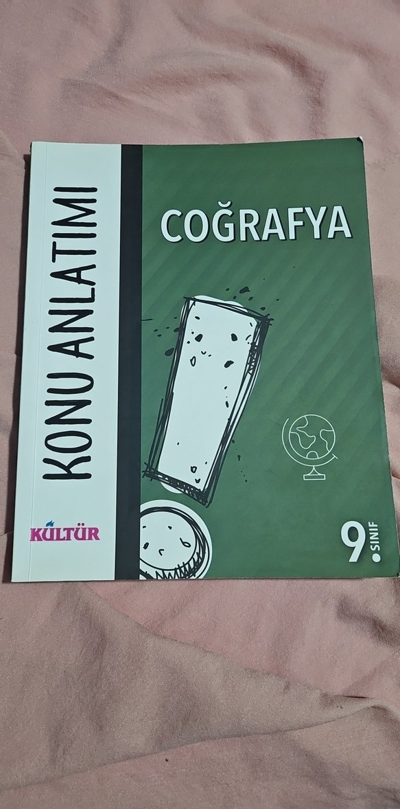 Kültür yayınevinin 9. sınıf Coğrafya konu anlatımı kitabı, sınav hazırlığı için önemli konuları içerir. Kitabın yüzde beşi falan çözülü kopardığım kısımlar vsde olabilir emin değillim. Kültür okullarındayken kullanmıştım, okulun hazırladığı kapak bu, muhtemelen gerçek yayını basamak eğitim sistemi. Çoğu temiz