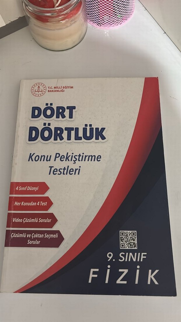 9. sınıf fizik için her konudan 4 test içeren, video çözümlü ve çoktan seçmeli sorular bulunan konu pekiştirme test kitabı sadece ilk test çözüldü