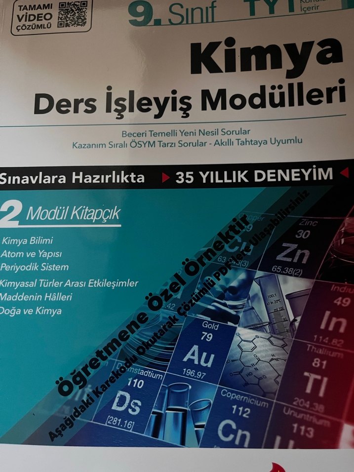 9. sınıf kimya ders işleyiş modülleri kitapçığı; atom yapısı, periyodik sistem, kimyasal tepkimeler ve maddenin halleri konularını içerir. Beceri temelli yeni nesil sorular ve video çözümleri mevcuttur. 35 yıllık deneyimle hazırlanmıştır.