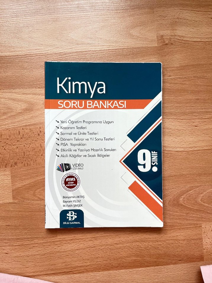 Yeni öğretim programına uygun 9. sınıf kimya soru bankası. Kazanım testleri, deneme sınavları ve yazılı hazırlık soruları içerir. ilk testler çözüldü sadece. çoğu boş.