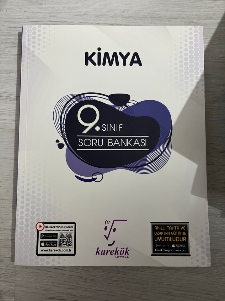 Sadece 4-5 testi çözülmüş temiz kullanılmış 9. sınıf kimya soru bankası, Karekok'tan, akıllı tahta ve uzaktan eğitime uyumludur.