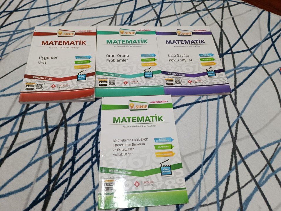 9. sınıf matematik konularını içeren oran, problemler, üstü sayılar, köklü sayılar, denklemler, eşitsizlikler ve mutlak değer kitap seti. Her fasikülde maksimum 20 sayfa kadar yapılı gerisi full boştur. hepsinin fiyatıdır.
