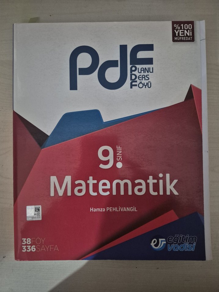 Hamza Pehlivangil imzalı, 9. sınıf matematik için 38 ders föyü ve 336 sayfadan oluşan, %100 yeni müfredat uyumlu eğitim kitabı.