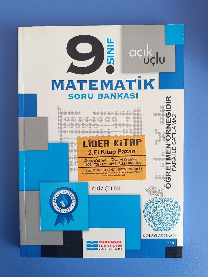 9. sınıf matematik soru bankası, Yeliz Çelen, sıfır kitap. güncel konulara uygun, klasik tarzda soruları da mevcut