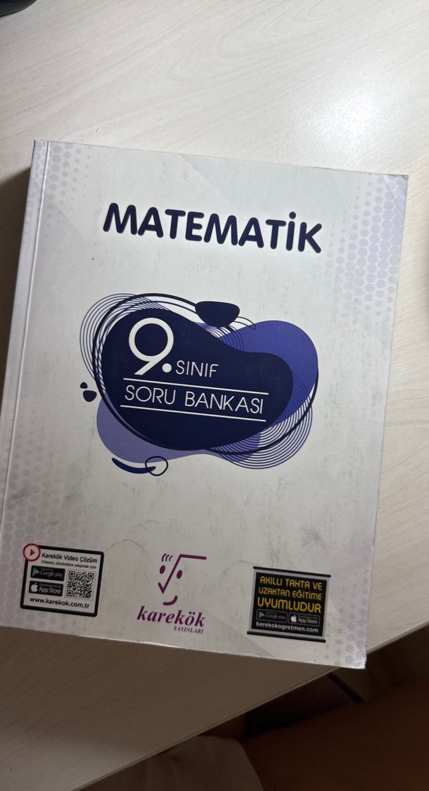 Karekok yayınevinin 9. sınıf matematik soru bankasıdır. Karekok uygulaması ile video çözümler içerir ve akıllı tahta ile uzaktan eğitime uyumludur. Sayfa 41’e kadar çözmüşüm onun dışında ara ara birkaç test çözmüşüm. Ancak kitabın %85’i boş. Almayı düşünen olursa daha detaylı ekleyebilirim.