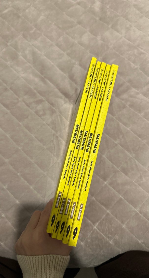 9. sınıf için farklı matematik konularını içeren beş adet sarı kapaklı matematik kitabı seti. hicbiri çözülü değil yeni nesil sorular