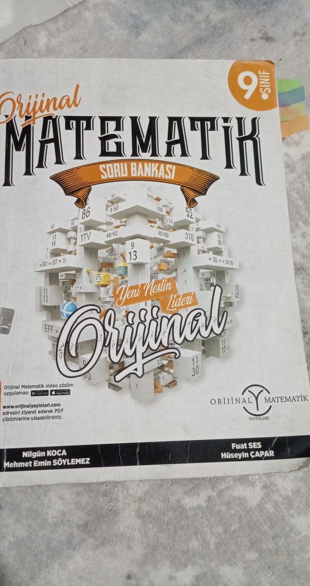 9. sınıf için hazırlanmış, video çözümlü Orijinal Matematik soru bankası. Nilgün Koca, Mehmet Emin Söylemez, Fuat Ses ve Hüseyin Çapar imzalıdır. Çözümlere PDF olarak online ulaşılabilir.