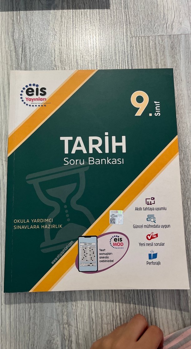 9. sınıf için EIS Yayınları'ndan tarih soru bankası. Güncel müfredata uygun, akıllı tahtaya uyumlu, yeni nesil sorular içerir. Perforajlı sayfalar bulunur. İlk 4 test çözülü aralardanda 5-6 test çözülü