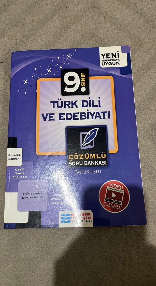 Tayfun Uslu'nun hazırladığı 9. sınıf Türk Dili ve Edebiyatı soru bankası, güncel ve çözümlü sorular içerir, yeni müfredata uygundur ve video çözümleri sunar.