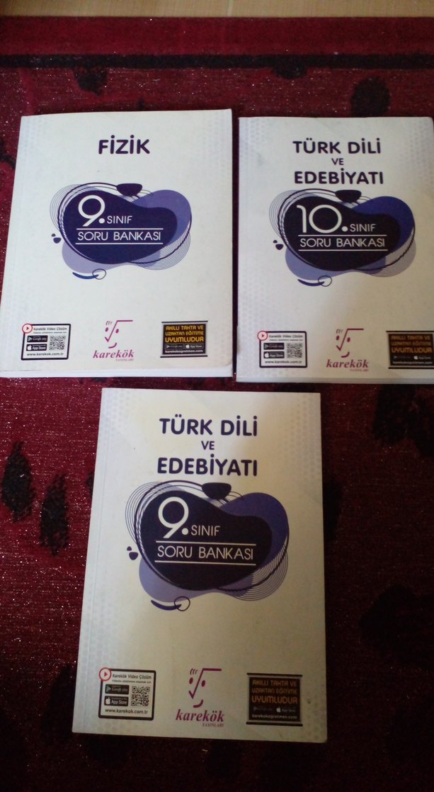 Set, Karekok tarafından hazırlanan 9. sınıf Fizik ve Türk Dili ve Edebiyatı ile 10. sınıf Türk Dili ve Edebiyatı soru bankalarını içerir. İlk birkaç sayfalarda çizilen yerler mevcut. Adet fiyatıdır.