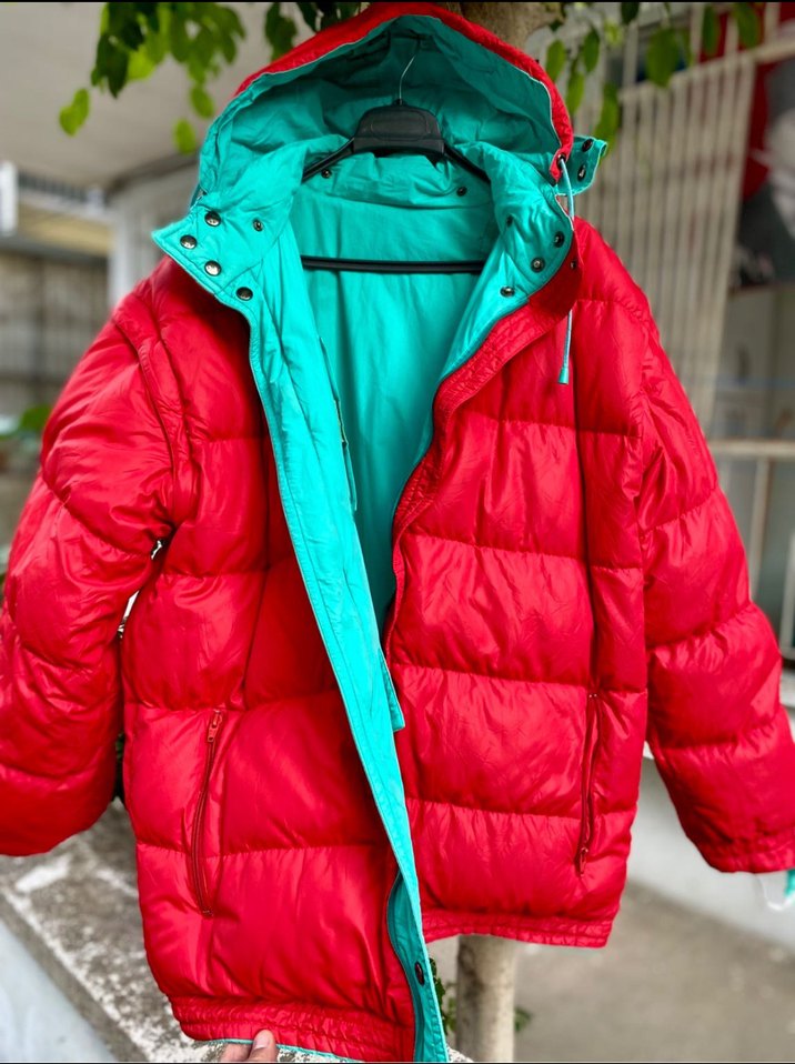 en 60 boy 87 Kalın şişme mont. Çift taraflı (double face). Kırmızı yüzü yeni gibidir, yeşil yüzde hafif kusurlar vardır Mario Colombo (İtalyan marka) yeleğe dönüşebilir – çok kullanışlı Suya, rüzgara ve fırtınaya dayanıklı