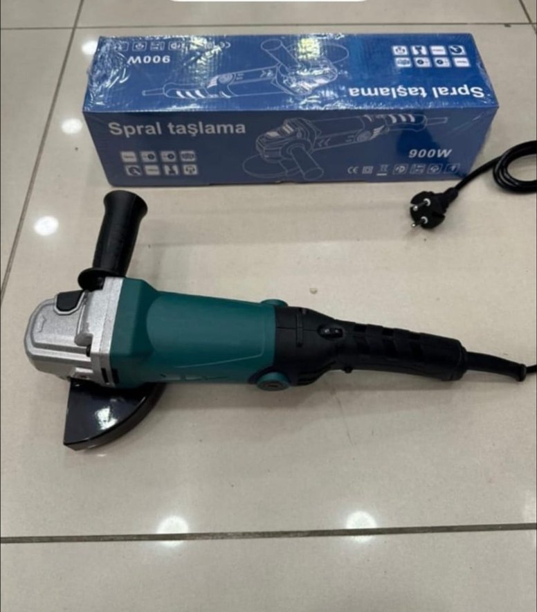 900W gücünde, turkuaz renkli spiral taşlama makinesi. Yan tutamaç ve koruyucu kapak ile kullanım kolaylığı sağlar. ️