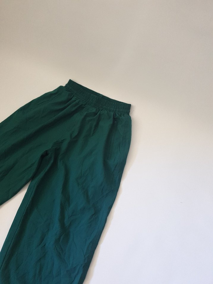 Orijinal 90'lar vintage nylon jogger. Beden: 40 (M–L uyumlu) Renk: Forest green / petrol yeşili İnce astarlı hafif kumaş Paça: Lastikli + fermuarlı Yan panel detaylı retro tasarım Rahat fit, vintage doku korunmuş Spor & streetwear kombinlere çok yakışır Temiz, sorunsuz, kullanıma hazır. Gerçek dönem parçası, modern kesimlerden farklı olarak authentic vintage fit taşır