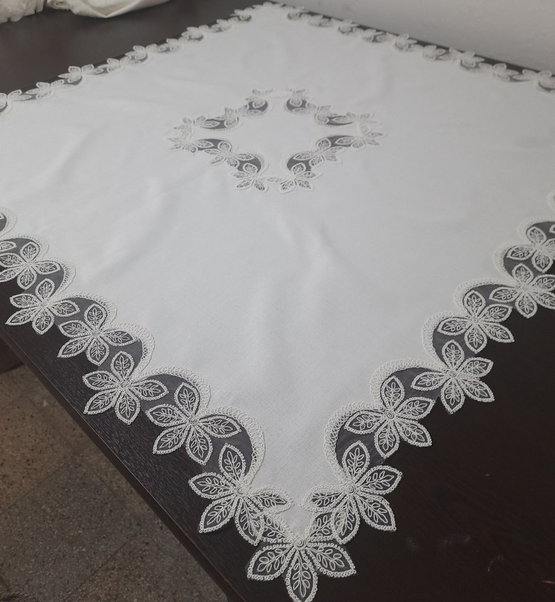 92×92 cm Keten Kumaş Üzerine İşlenmiş Manolya Model Fransız Güpürlü Fiskos Bohça Çeyizinize Şıklık Katacak
