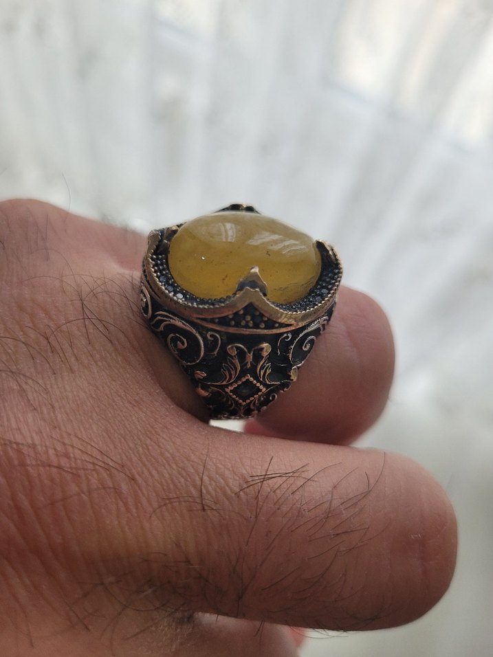 925 ayar Erkek gümüş damla kehribar yüzük