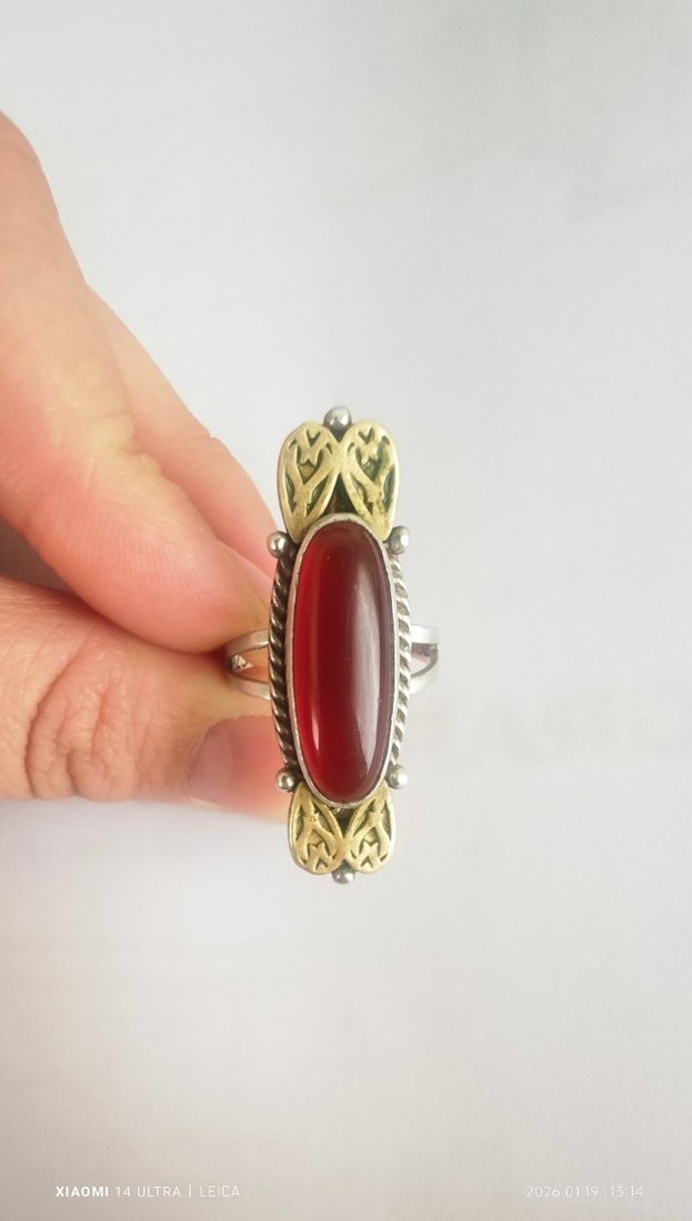 baya ağır yaklaşık olarak en az bi 10 gram gelir diye düşünüyorum başka bir model beğendiğim için satıyorum halka kısmında hafif eğrilik var ancak pek belli değil kenarlarında Gold renk detayları mevcut baya uzun bir yüzük makul teklifleri değerlendireceğim ölçüsü 19 yada 20 olabilir geniş