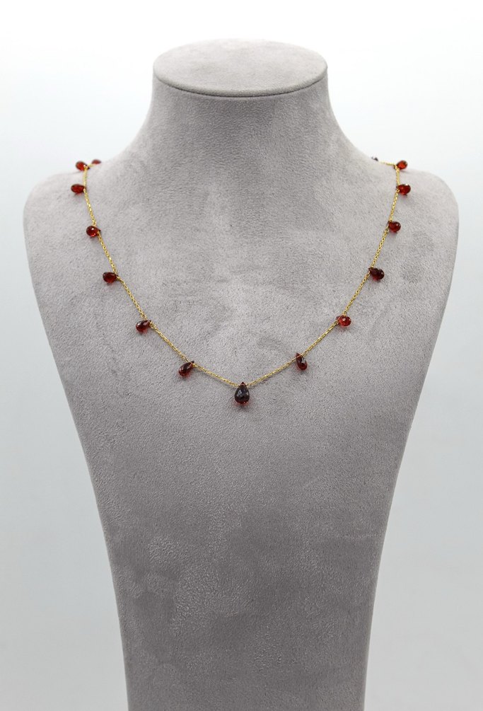 925 Ayar Gümüş Altın Kaplama 15Ct Garnet Taşlı Minimal Kolye