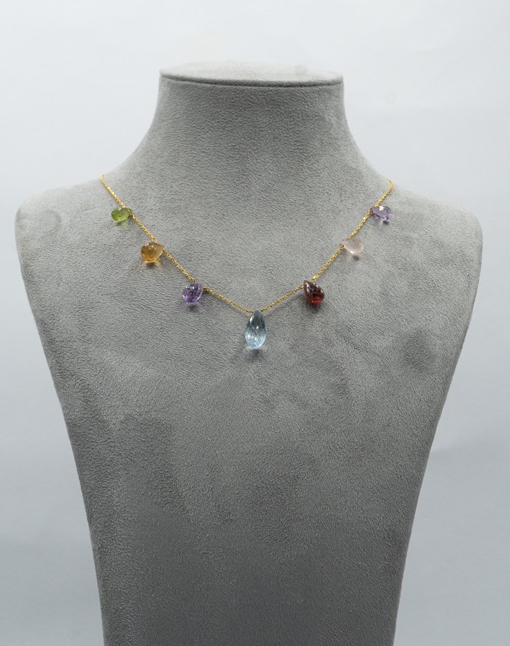 925 Ayar Gümüş Altın Kaplama 18 Ct Multi Stone Renkli Kolye