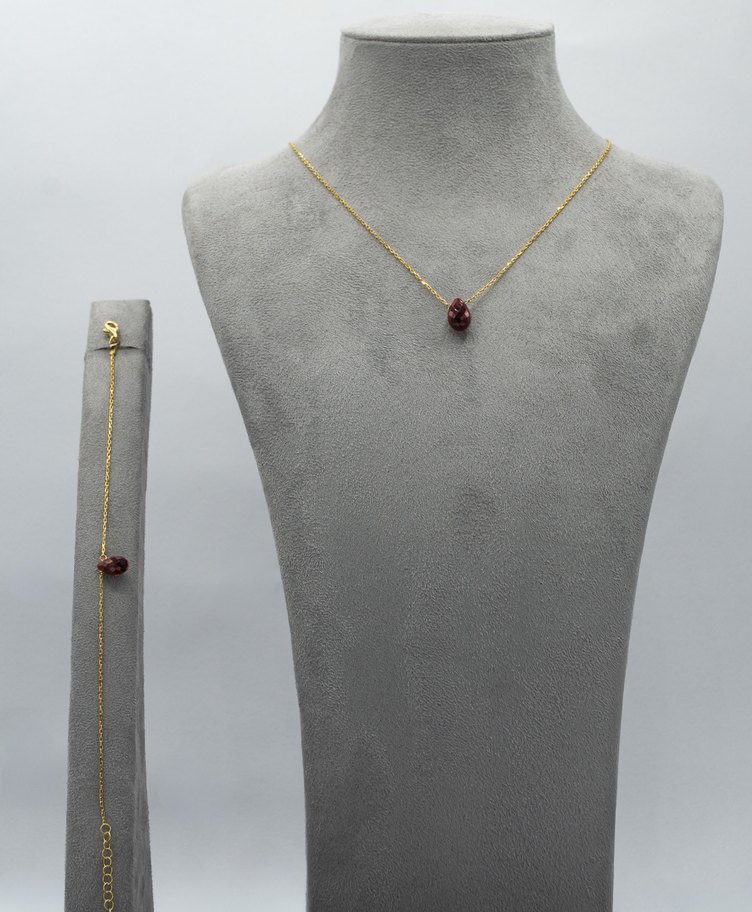 925 Ayar Gümüş : İnce işçilikli gümüş zincir, uzun ömürlü kullanım için rodyum - altın kaplama ile güçlendirilmiştir.,Antialerjeniktir. Ayarlanabilir Tasarım: Hem kolye hem de bileklikte bulunan uzatma zinciri (Kolye : +5 Cm) (Bileklik +3 Cm) sayesinde kendinize en uygun ölçüde kullanabilirsiniz. Teknik Özellikler: Taş Türü: 100 Doğal Garnet,Semi Precious | Yarı Değerli Renk: Gümüş (Metal) Altın(Sarı) , Derin Kırmızı (Taş) Materyal: 925 Ayar Gümüş Rodium - Altın Kaplama ' 3,80 Gr Gümüş ve 6 Ct Yarı Değerli Taş ' Bakım ve Saklama Koşulları: Doğal taşlarınızın ve gümüşünüzün ömrünü uzatmak için yoğun kimyasallardan uzak tutunuz. Nemli bir bezle silerek kutusunda saklamanız, ürünün ilk günki ışıltısını korumasını sağlar. Müşterilerimiz İçin Not Kullandığımız taşlar gerçek doğal taşlar olduğu için, taşların renk tonlarında ve dokularında ufak farklılıklar görülebilir. Bu durum, aldığınız kolyenin dünyada sadece size özel ve tek olduğunun kanıtıdır.