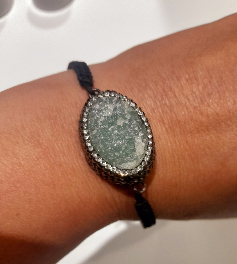 Doğal yeşil druzy taşlı, kenarları zirkon, el yapımı gümüş bileklik. en 2.7cm boy 2 cm, yükseklik 0.8cm