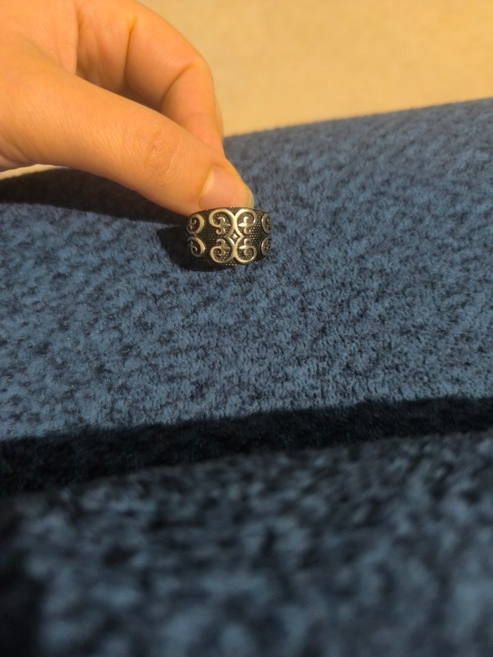 925 Ayar Gümüş (Sterling Silver) Yüzük • İç kısmında 925 damgası ile gerçek gümüş olduğunu gösterir. • Siyah taşlı şık ve modern tasarım (oniks / siyah taş). • Geniş yüzük yüzeyi ile dikkat çekici görünüm. Ağırlık: yaklaşık 10–15 gr (tahmini). yüzük ölçüsünü bilmiyorum ama çok büyük degil