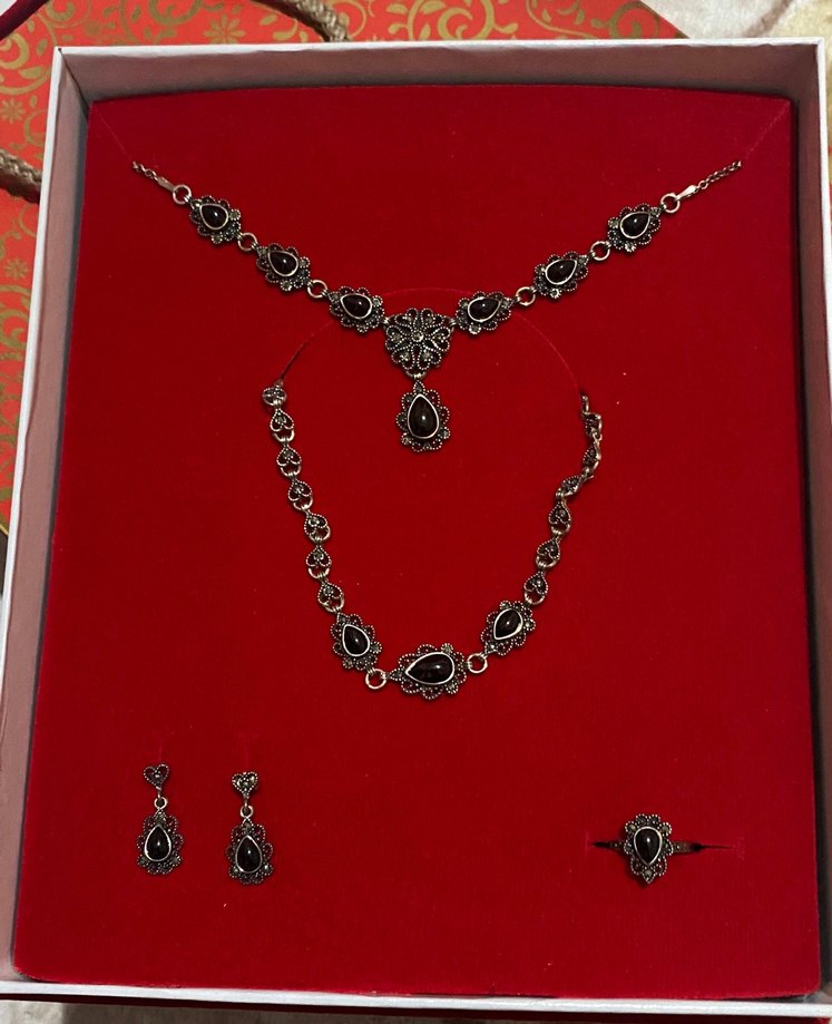 925 ayar Gümüş Erzurum oltu taşlı takı seti