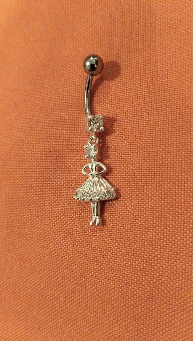 925 ayar gümüş, zirkon taşlı kadın göbek piercingi. Titantum kilit.