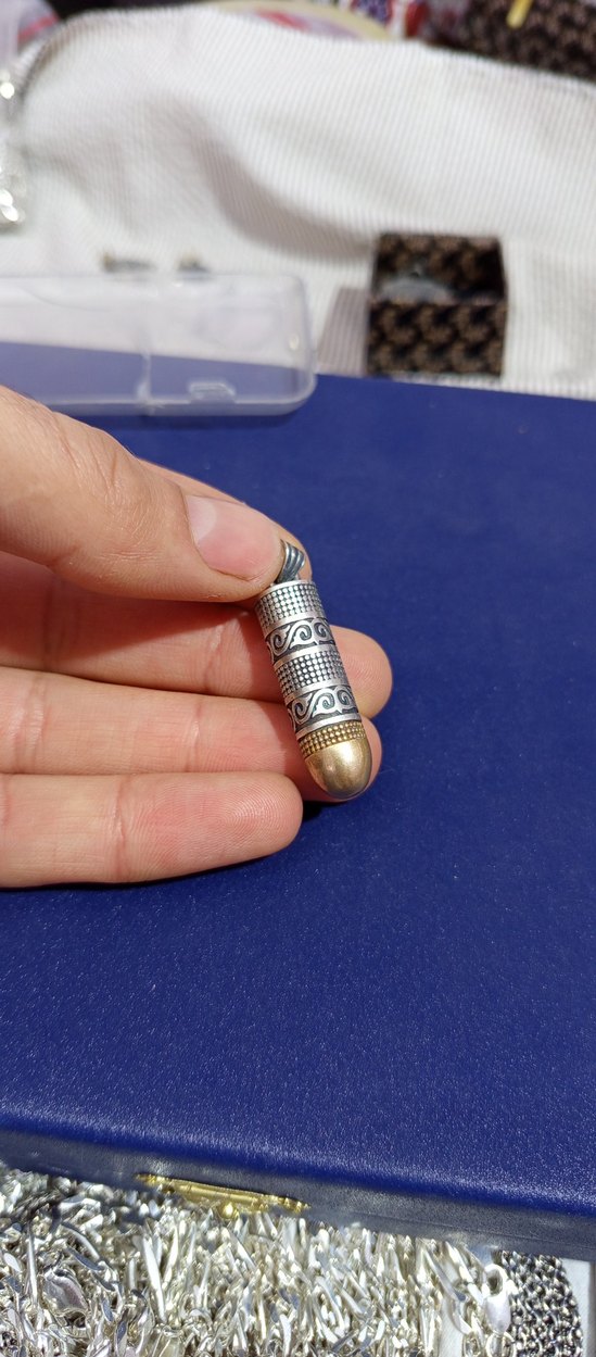 925 ayar gümüş vintage tarzı üst düzey mermi figür kolye ucu. Sıfır üründür alıcısına hayırlı olsun.
