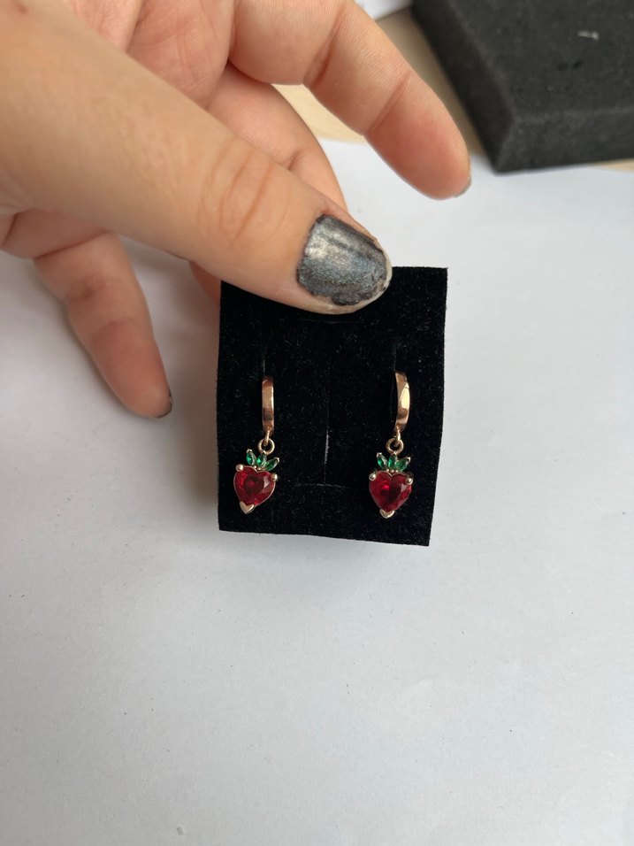 925 ayar gümüş kırmızı zikron taşlı rose gold kalp elma küpeler