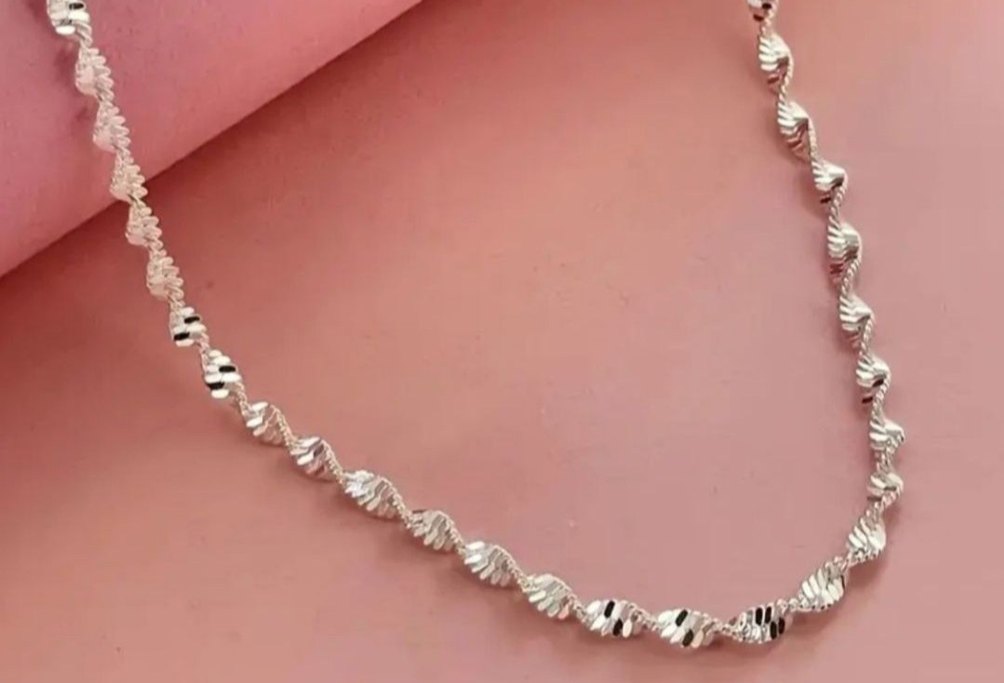 925 ayar gümüş kolye, singapur detaylı zincir bağlantılarına sahiptir. deseni ile günlük kullanıma uygun, çağdaş ve göz alıcı bir tasarımdır 2mm kalınlığında 53 cm uzunluğunda.
