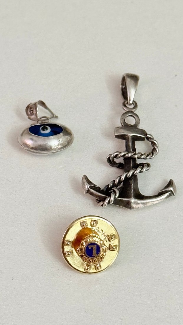 Çapa göz ️ boncuğu ikisi 925 ayar gümüş sarı rozet gümüş dil dönem eski Avrupa nadir bi rozet pirinç 3 parça birden