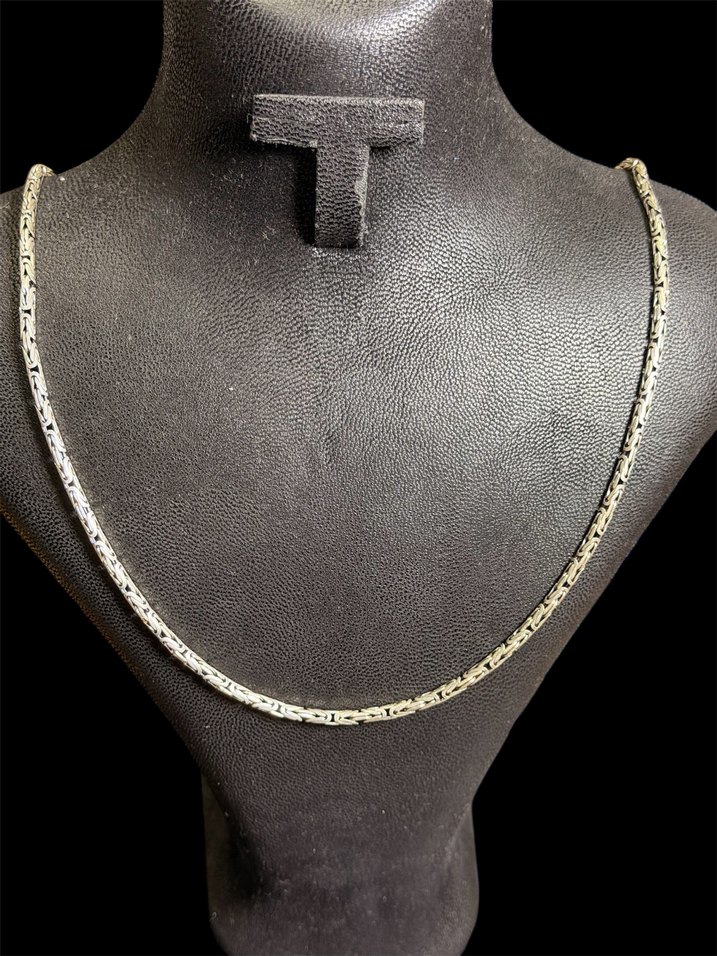 Gümüş Kral Zincir Elişi Kolye 925 ayar gümüşten üretilmiştir. Kolyenin uzunluğu 60 cm. Kolyenin kalınlığı 4.2 mm kolyemizin ağırlığı 48 gram Alana şimdiden hayırlı olsun