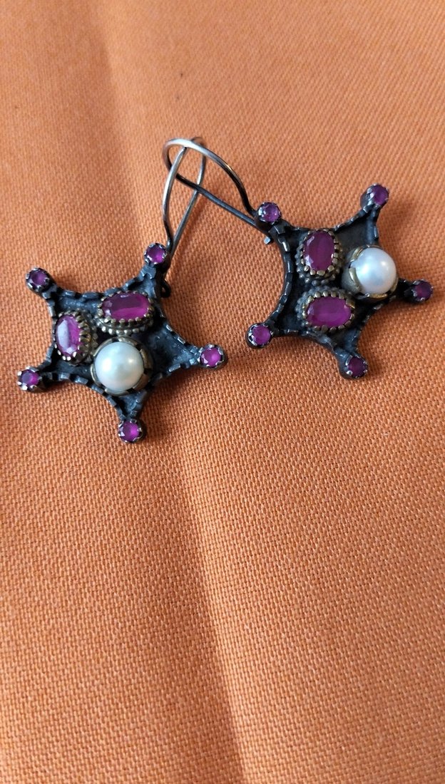 925 Ayar Gümüş kök yakut ve inci taşlı otantik küpe. Tüm takı ürünlerimiz sıfırdır. Hediyelik kutusu ile gönderim yapılacaktır.