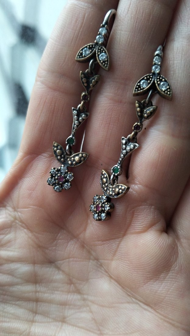925 Ayar Gümüş, kök yakut zümrüt taşlı otantik tarz küpe. Tüm gümüş ürünlerimiz sıfırdır. Hediyelik kutusu ile gönderim yapılacaktır.