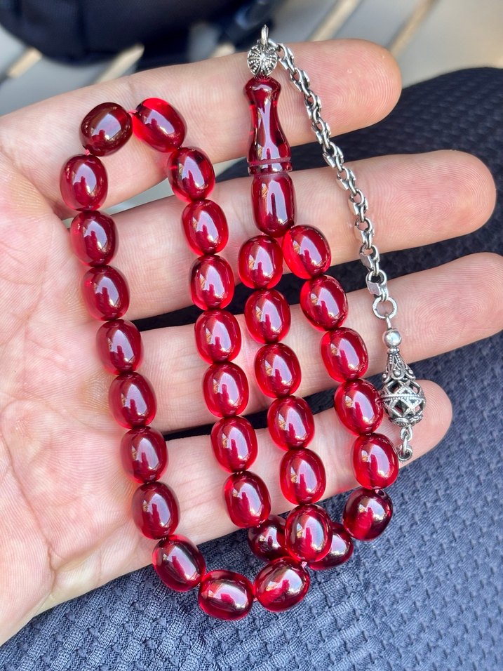 Tespihim 9x10mm Ölçülerinde Full 925 Ayar Pullu Gümüş dizayn, hatasız en az 30 yıllık mermer gibi çekime sahip ateş kehribardir.