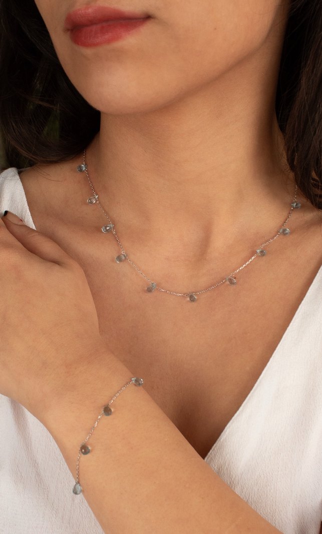 925 Ayar Gümüş Rodyum Kaplama 17 Ct Blue Topaz Set