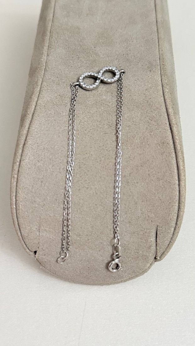 Zirkon mıhlama taş işlemeli 925 ayar gümüş kusursuz çok zarif şık sonsuzluk bilekliği